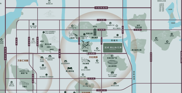 生态景观:步行5分钟可达江南运河风光带、垂虹桥遗址公园,3公里内42个公园(如吴江公园、太湖生态公园),周末休闲举步即达。
