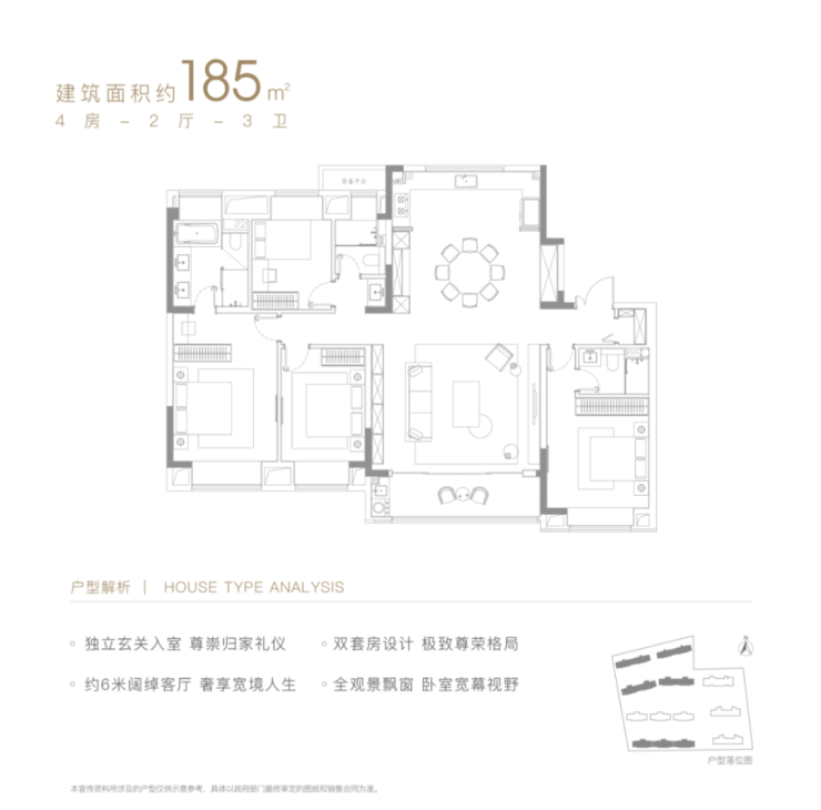 建面约185㎡,4房2厅3卫