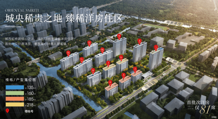 建筑面积:约135㎡、160㎡、185㎡、218㎡(主力在售160–218㎡)