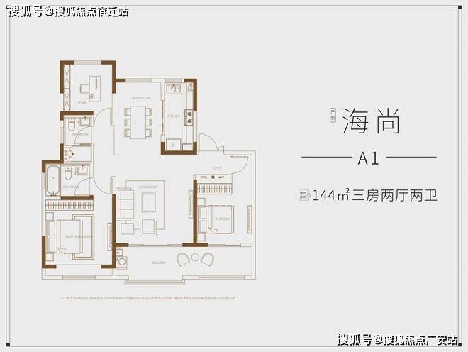 目前开盘的1号楼均为144㎡户型,只做了3房2厅2卫,超大的双联阳台,尺度感拉满。