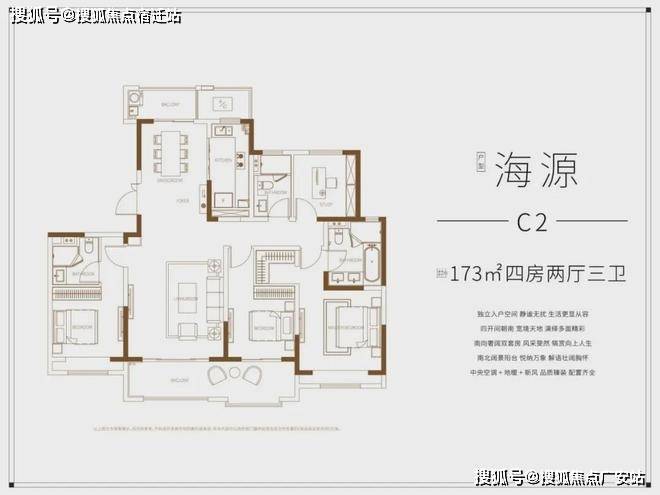 此外还有173㎡的户型更为优秀,3房朝南,双联阳台大开间,采光极好。