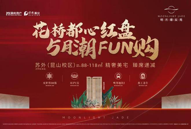 明月璟辰苑位于昆山花桥金捷路远创路交汇处,由央企保利置业与国企象屿地产联合开发,定位为精装现房社区。 项目占地约5.43万㎡,总建面19.65万㎡,规划10栋25-26层高层住宅,共1384户,容积率2.5,绿化率35%,车位配比1:1.24(总车位1713个)。项目采用干挂石材+真石漆外立面,精装标准含中央空调、新风系统等,交付时间为2024年9月30日