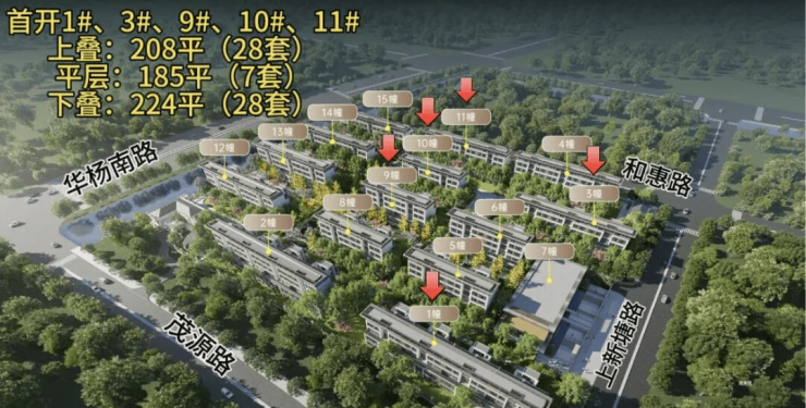 低密标杆:容积率仅1.2(板块内绝版),35%绿化率,14栋5-6层建筑,188户纯改善社区