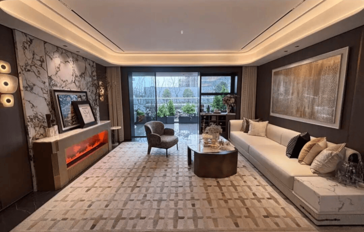 项目甄选日立、威能、百朗、高仪等一线国际品牌,并融入全屋墙布、电视机岩板背景墙等细节,以匠心筑就质感生活。