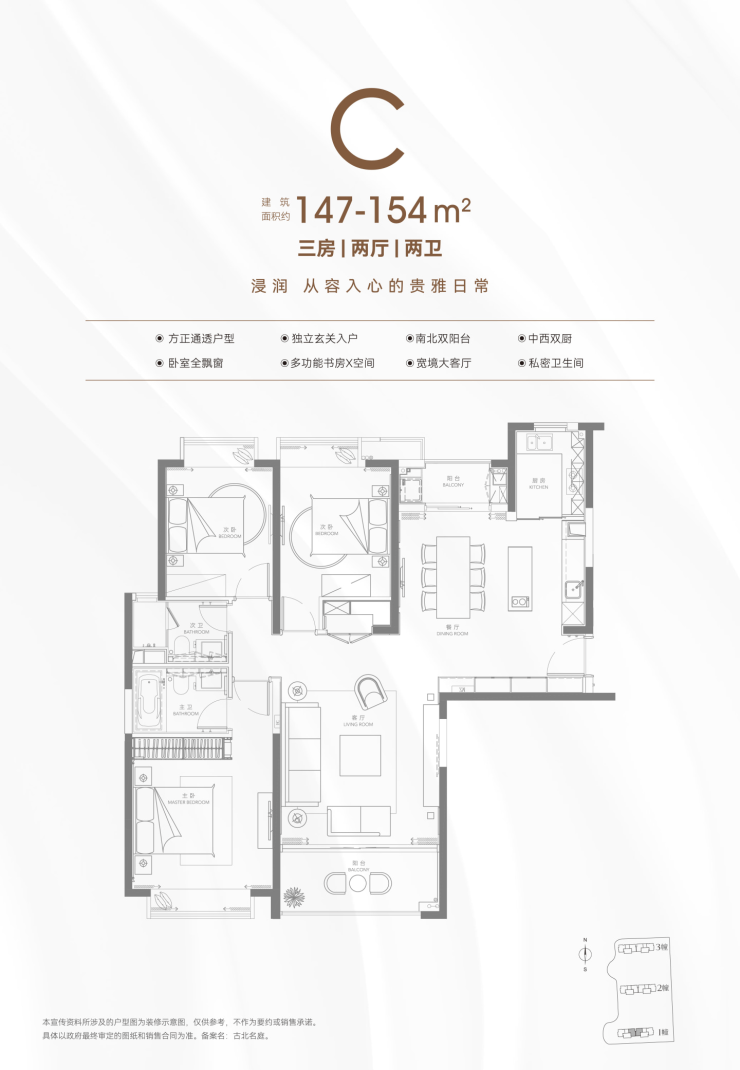 项目以容积率1.2、绿化率35%–38%的极致低密标准,重塑内中环间稀缺的居住形态。建筑外立面采用天然黄金麻石材与铝板组合,由国际知名设计机构Aedas操刀,呈现现代极简与东方内敛融合的优雅气质。精装交付标准配备大金中央空调、菲斯曼地暖、博世厨电,主卧均设独立衣帽间与全景飘窗,客厅南向面宽最高达14.5米,实现全明通透的奢阔格局。