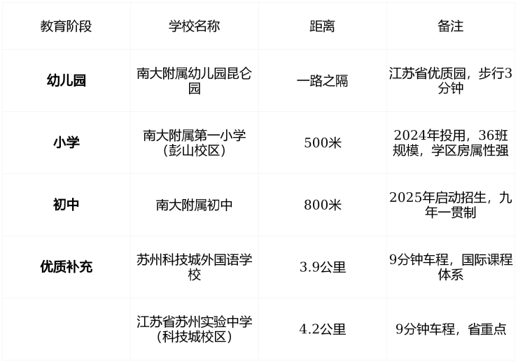 ✅ 教育优势 :无需择校焦虑,孩子从幼儿园到初中“家门口”完成,家长省心省力。
