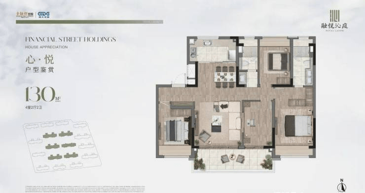 130㎡四房两卫:总价376万起,四开间朝南,双联阳台布局,主卧套房配步入式衣帽间,南北全飘窗。