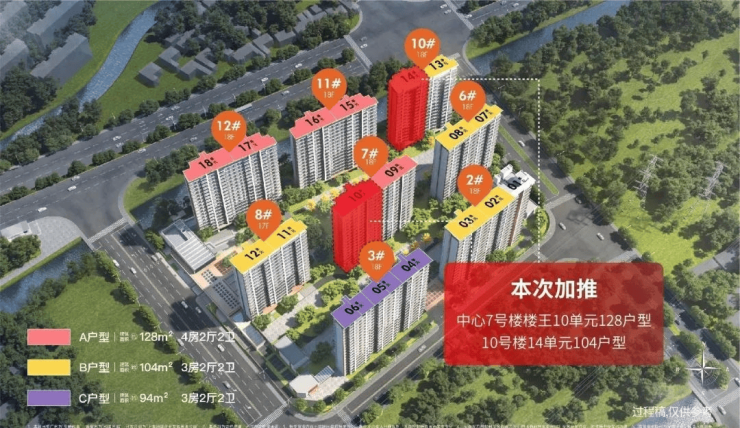 加推7号楼楼王10单元128㎡户型,及14号楼14单元104㎡户型