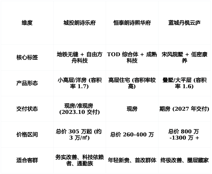 优势分析:相比丹枫云庐,乐府具有现房交付的确定性,规避了期房烂尾或减配风险;相比熙华府,乐府拥有更低的容积率和更先进的“自由方舟”系统,居住舒适度上限更高。