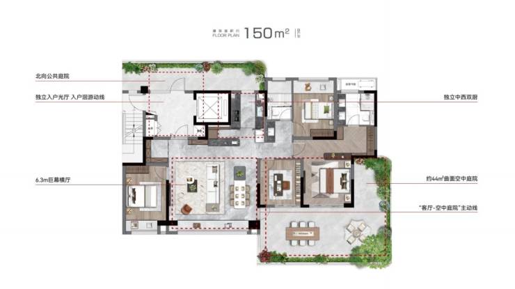 -在售户型:150㎡B户型、150㎡A户型。
