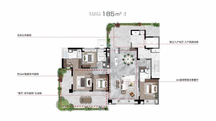 以185㎡B户型为例: