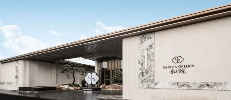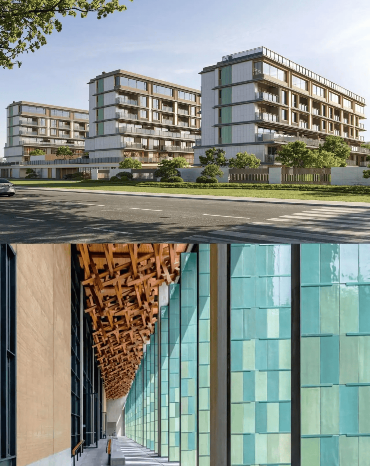 采用青绿陶板+玉琼鎏金配置,山墙仿南宋官窑青釉,外立面融入如意纹装饰,融合东方美学与现代工艺。