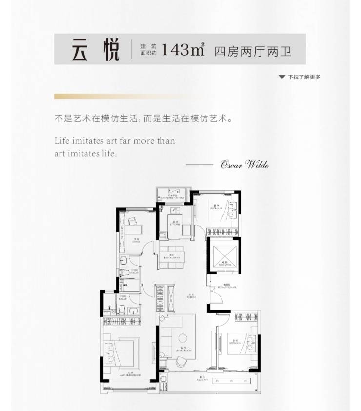 高层:建面约 99-265㎡,得房率超 80%,主打全景落地窗与大横厅设计,部分户型四开间朝南。