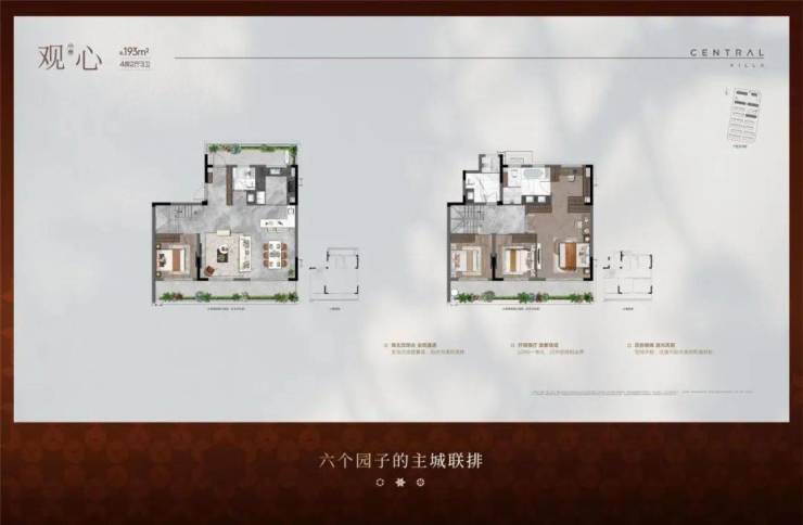 项目主力打造建面约195-245㎡主城联排、建面约169-193㎡低密叠加。