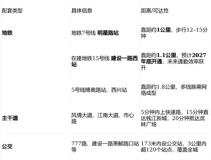 ✅ 通勤优势 :地铁+高架双动脉加持,无论是前往奥体、钱江新城还是西湖景区,均实现“ 15分钟生活圈 ”全覆盖。