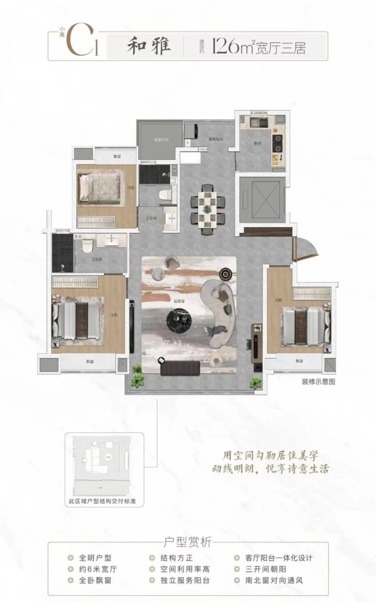 精装交付小高层126类洋房设计,两梯两户,约6米宽厅洋房