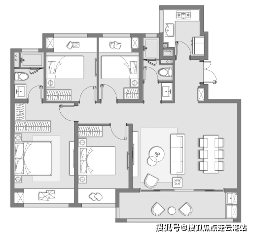 锦绣雅著建筑面积约125㎡四室两厅两卫户型,将四叶草的美好运用到空间布局上,让一幢房子满足不同阶段每一位成员的需求,全面满足居者的多样化产品偏好。
