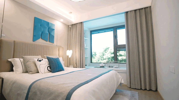 锦绣雅著赠送南向卧室电动窗帘的电机和轨道,可无线遥控,便可实现窗帘的自动开合、升降,提供更多的舒适和休闲体验。
