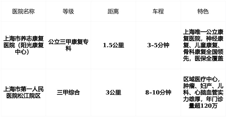✅ 健康保障 : 1.5公里内覆盖专业康复医疗,10分钟直达三甲综合医院 , 老人术后康复、儿童发育干预、慢性病管理,全部无忧 。
