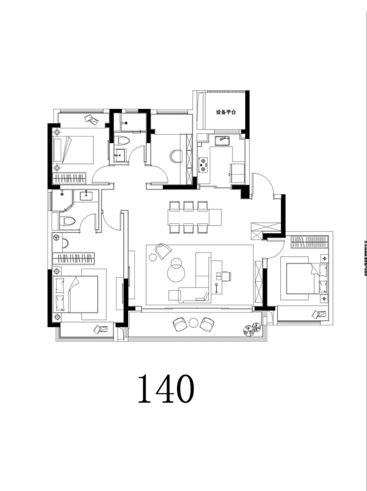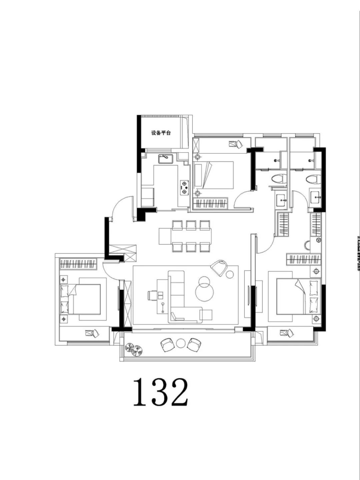 105㎡三居、120㎡四居、132㎡三居(3+1房)、143㎡四居(4+1房)