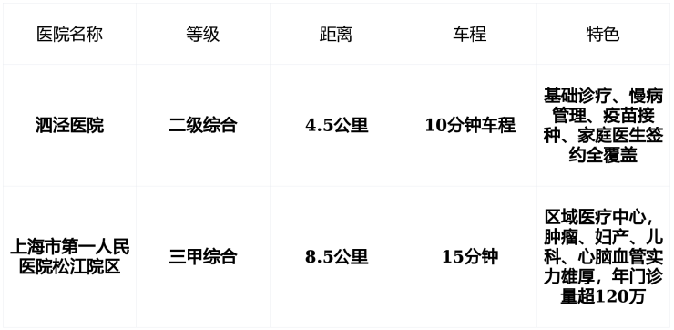 ✅ 健康保障 : 日常小病不出社区,急症15分钟直达三甲 , 无康复专科,但周边医疗资源可满足家庭基础需求 。