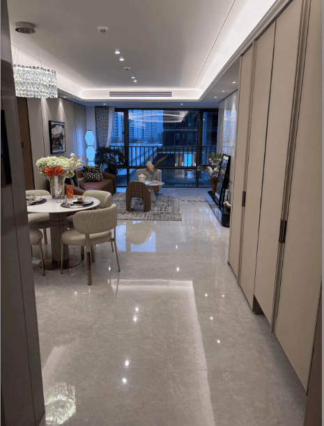 精装标准:约5000元/㎡,配备博世六件套、汉斯格雅卫浴、唯宝洁具、日立中央空调、兰舍新风、博世地暖等一线品牌。