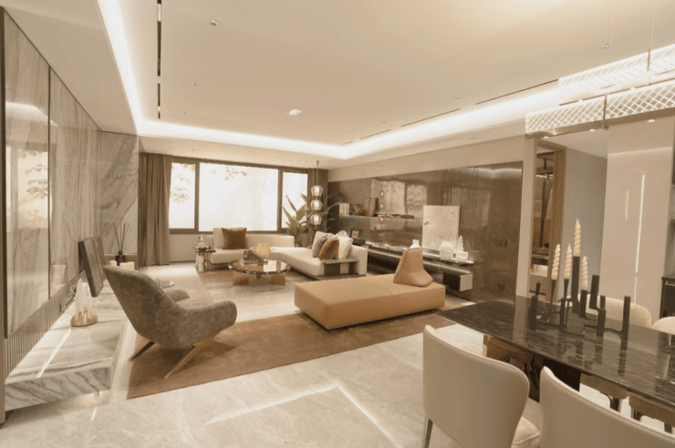 交付标准:全装修交付,装标不高于4000元/㎡,配备中央空调、地暖、新风系统三大件,品牌建材与智能化配置齐全 。