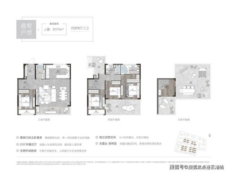 上叠170平户型:四室两厅两卫,总价330-350万