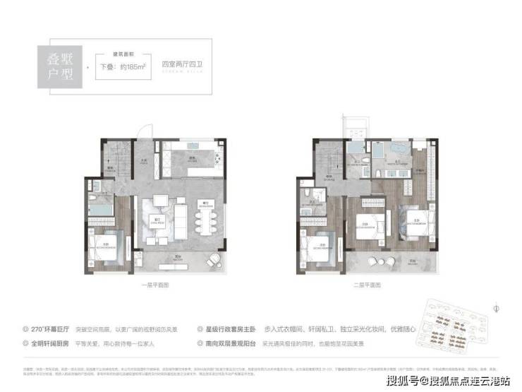 下叠185平户型:四室两厅四卫,总价380万-400万