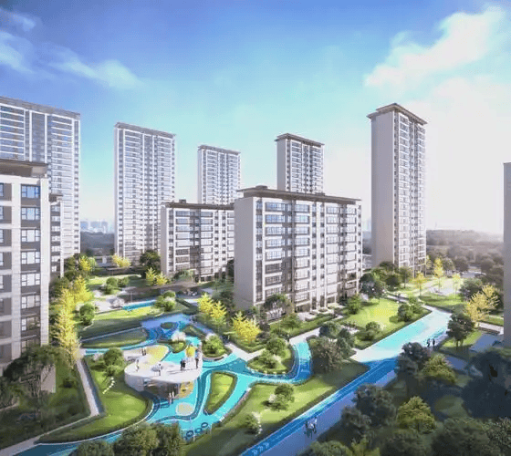 景观设计:中央景观轴+组团花园,融入"溪云"主题水系景观,打造人工生态溪流+湿地景观带。