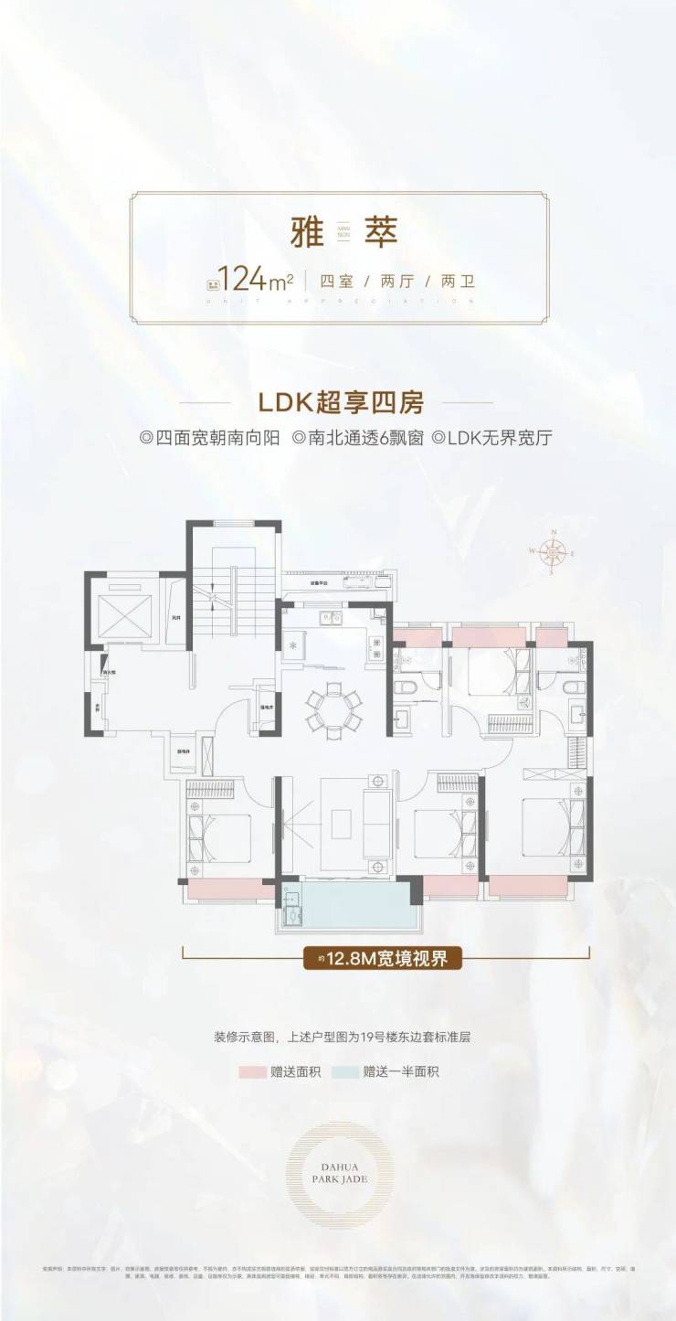 124㎡四房四开间朝南,独立玄关,主卧套房+双台盆卫浴,客厅面宽超5.4米,LDK一体化设计