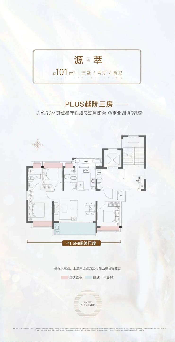 101㎡三房三开间朝南,6.2米横厅,全景落地窗,双阳台,主卧带独立衣帽间,无暗卫