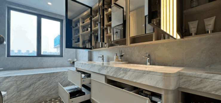 绿城·沁百合的创新之处在于,将收纳需求前置到建筑设计阶段,同时通过精装标准的统一配置,重新定义了高端住宅的功能标准。