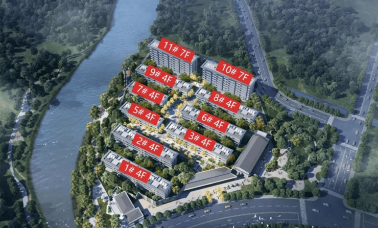 项目占地约2.3万㎡,总建面4.03万㎡,容积率仅1.05,规划2栋7层洋房(56套)和8栋4层叠墅(88套),合计144户,车位配比1:2