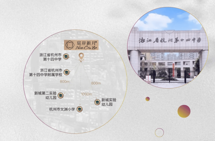 教育资源:项目一路之隔为浙江省杭州第十四中学附属学校(九年一贯制公办),此外周边还有杭十四中康桥校区、杭州市育才大城北学校等 。4百科5