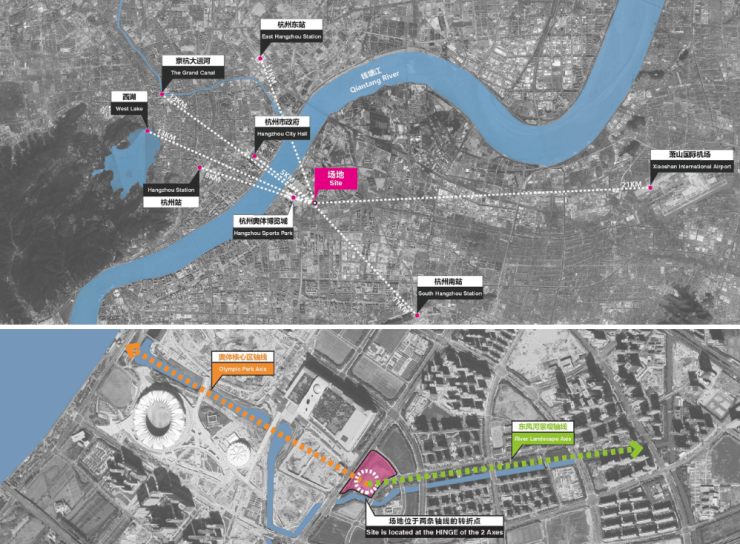 由海威控股旗下杭州海威奥城置业有限公司开发的海威·安铂中心,坐落于萧山区奔竞大道与望博路交汇处,地处杭州“北斗七星”城市中轴核心,与“杭州之门”“大莲花”隔江相望,直线距离钱塘江仅450米,是杭州少有的江景+酒店+商业+办公四位一体的超高层城市综合体。