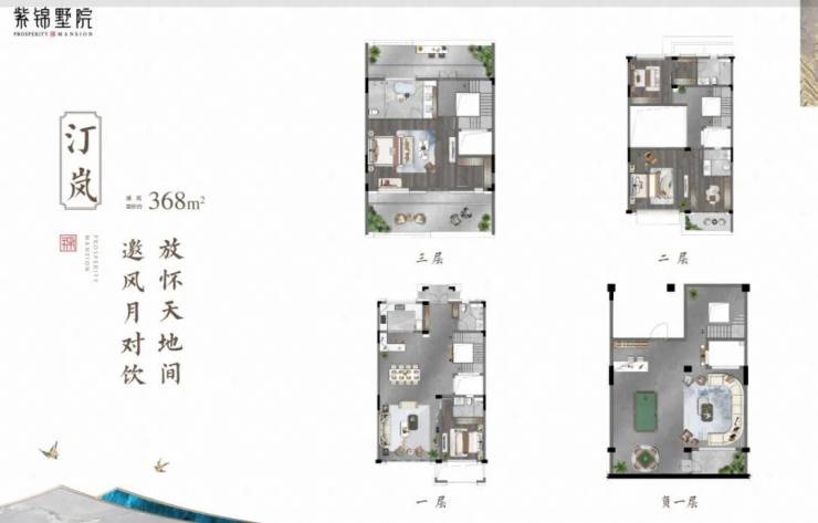在售户型:紫锦墅院目前主要在售125~140㎡的平墅户型,为三居室设计,可满足购房者需求。此外,项目还包含别墅产品,如合院及临湖联排别墅,合院建面约234~300㎡,联排别墅建面约375~430㎡。