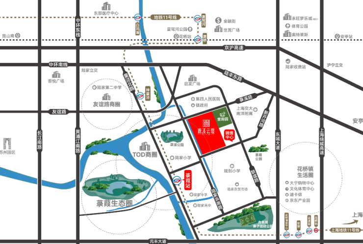 距苏州地铁S1线 菉葭站约700米 ,步行约10分钟可达,7站直达上海地铁11号线花桥站