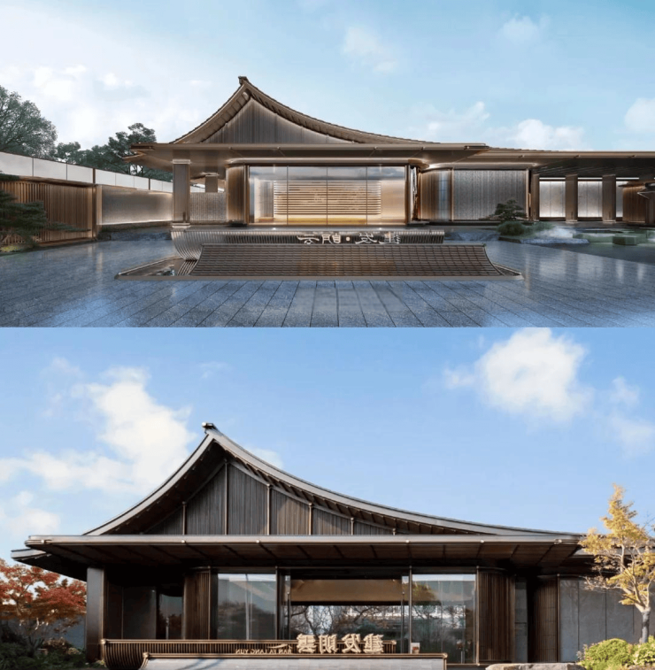 外立面采用现代东方风格,搭配江南园林景观示范区