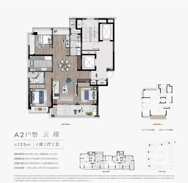 精装配置国际一线品牌(大金中央空调、杜拉维特卫浴等),户型涵盖125㎡四房至180㎡大平层,部分户型带横厅设计