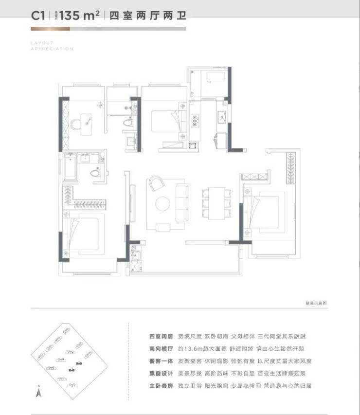 135㎡四室两厅两卫大面宽横厅主卧带独立衣帽间357.5万起
