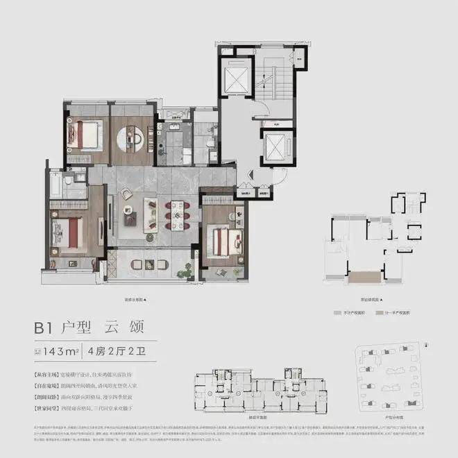 面积:约125㎡4房2厅2卫、约143㎡4房2厅2卫、约180㎡3+1房2厅3卫
