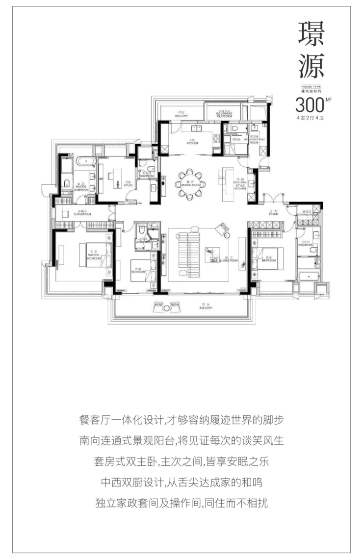 平层:建面约300m²(4房2厅4卫)