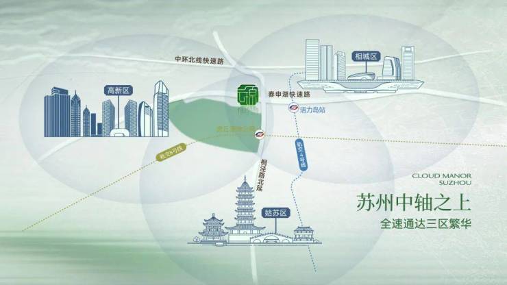 它牢牢占据苏州城市发展中轴——桐泾路北延线的黄金位置,同时与万亩虎丘湿地公园仅一步之遥