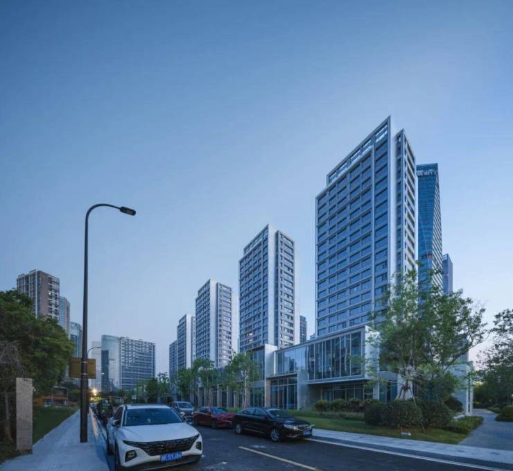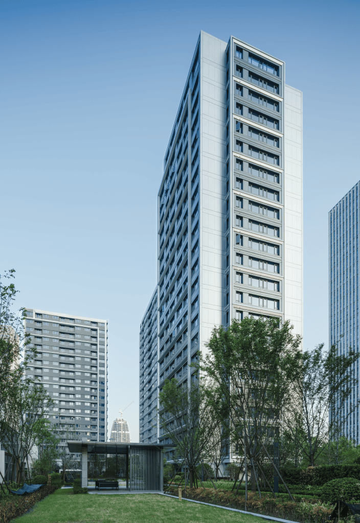 在住宅品质竞争白热化的时代,傲世邸以极具未来感的立面美学,树立起鲜明的品牌形象。设计团队从杭州“精致、和谐、大气、开放”的城市精神中汲取灵感,融入奥体板块的现代活力基因。